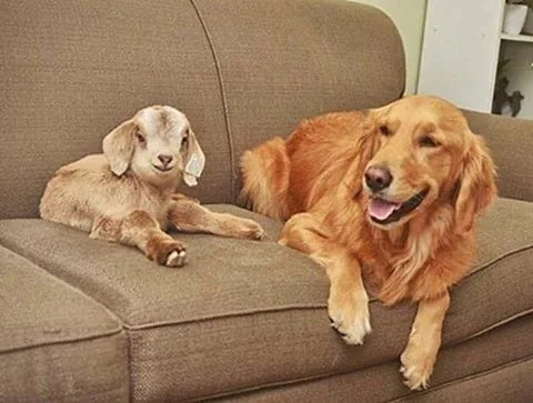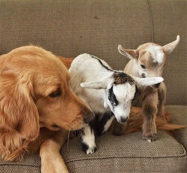 Loryn สุนัขสายพันธุ์โกลเด้นรีทรีฟเวอร์ เจ้าของได้พาลูกแพะในฟาร์มมาดูแลอย่างใกล้ชิดในบ้าน ทางด้านเจ้า Loryn ก็ทำหน้าที่เป็นพี่เลี้ยงที่ดี มันไปนอนเฝ้าเมื่อลูกแพะต้องเข้าไปนอนในกรง และเมื่อลูกแพะออกมาจากกรงมันก็เฝ้าติดตามตลอดไม่ว่าจะเป็นช่วงเวลาที่ลูกแพะต้องกินนม