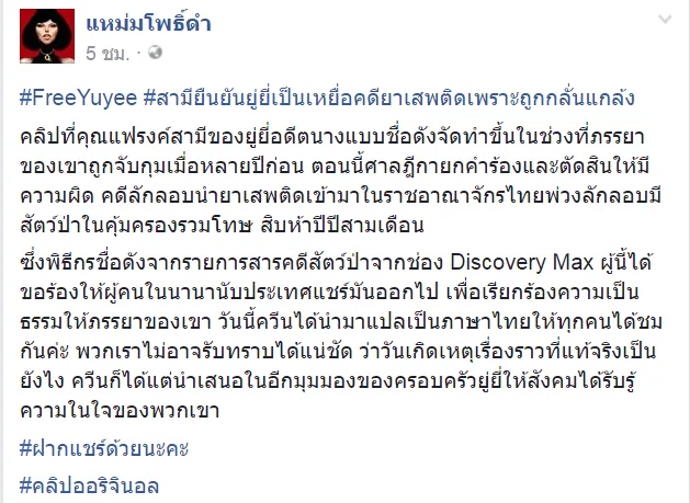 #FreeYuyee #สามียืนยันยู่ยี่เป็นเหยื่อคดียาเสพติดเพราะถูกกลั่นแกล้ง