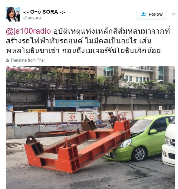 เวลา 12.00 น. วันที่ 18 มีนาคม 2560 จากกรณีอุบัติเหตุอุปกรณ์ช่วยยกคานรองรับทางวิ่งรถไฟฟ้า (Lifting Frame) โครงการรถไฟฟ้าสายสีเขียว ช่วงหมอชิต – สะพานใหม่ – คูคต ร่วงหล่นลงมาบนถนนพหลโยธิน ฝั่งขาเข้า ใกล้แยกรัชโยธิน (ตรงข้ามปั๊ม ESSO) ทำให้รถยนต์เสียหาย 2 คัน เมื่อวันที่ 17 มีนาคมที่ผ่านมา