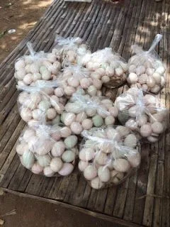 ด้านการตลาด…เป็ดที่ซื้อมา ใช้เวลาประมาณ 2 สัปดาห์ก็ทยอยออกไข่ จนวันนี้ได้ออกไข่แล้ว จำนวน 350 ตัว นั่นหมายถึงว่ามีไข่ให้ขายวันละ 350 ฟอง โดยระยะแรกไข่ก็จะยังฟองเล็กที่เรียกว่า “ไข่สาว” แต่ไม่นานนักฟองก็จะโต ซึ่งจะโตเร็วกว่าไก่ จนได้ขนาดเบอร์ 0 (เบอร์ใหญ่ที่ได้ราคาที่สุด)