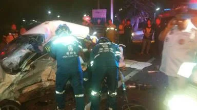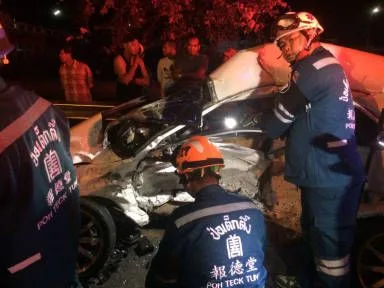 ภายในรถเก๋ง มิตซูบิชิ เจ้าหน้าที่กู้ภัยป่อเต็กตึ๊งได้ใช้เครื่องตัดถ่างนำร่างออกมาจากรถ ทราบชื่อคือ นาย พรพิชิต นฤนาทมนตรี ออายุ 47 ปี และใกล้กันพบรถนั่งส่วนบุคคล ยี่ห้อบีเอ็มดับบลิว รุ่น 218i คู่กรณี พบผู้ได้รับบาดเจ็บชาย 1 ราย เป็นคนขับ จนท.กู้ภัยให้การช่วยเหลือนำส่งโรงพยาบาลเปาโล รังสิต ทราบชื่อต่อมา นายกิติภูมิ เอี่ยมสุข หรือ เดียร์ อายุ 28 ปี เป็นลูกชายของโหน่ง ชะชะช่า ตลกชื่อดัง รายละเอียดความคืบหน้าจะแจ้งให้ทราบต่อไป
