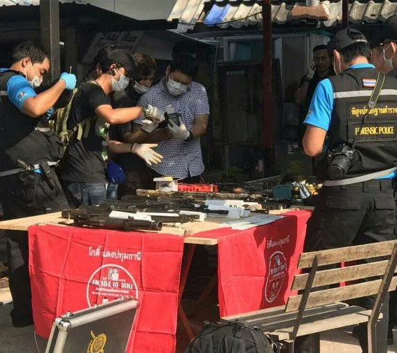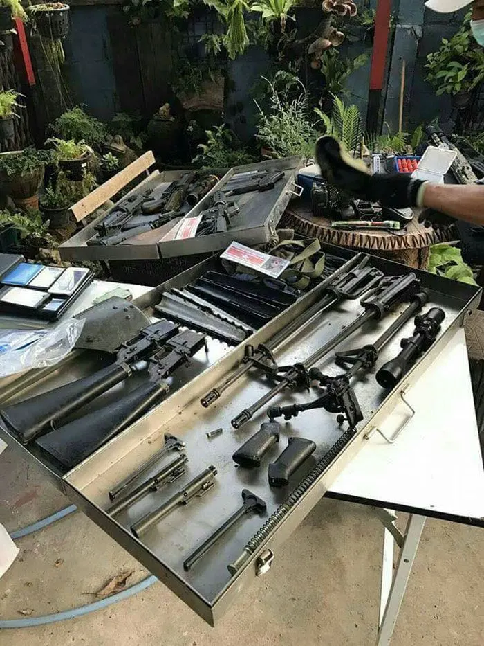 วิดีโอขณะเจ้าหน้าที่เข้าตรวจค้นพบอาวุธจำนวนมาก