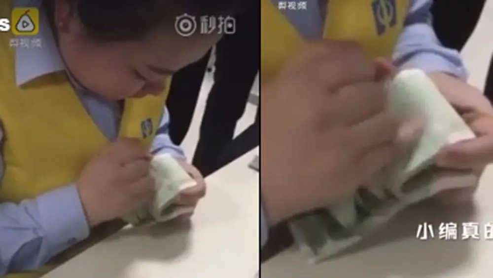 ไวเวอร์!ฝีมือนับธนบัตรของพนักงานหญิงชาวจีน