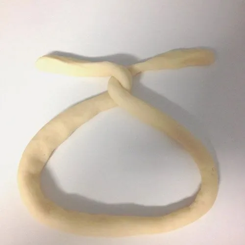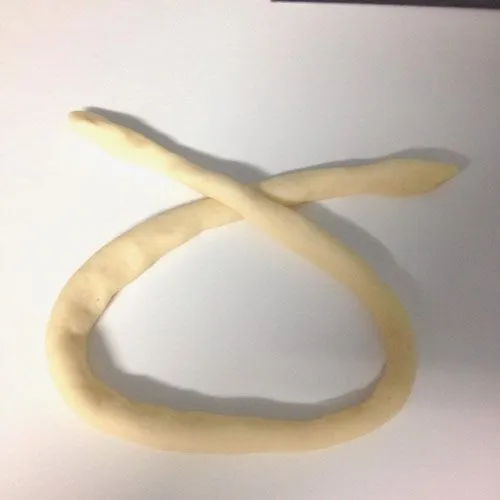 7. ปั้นแป้งเป็นเส้นยาวๆ แล้วทำตามรูปด้านบนเลยค่ะ