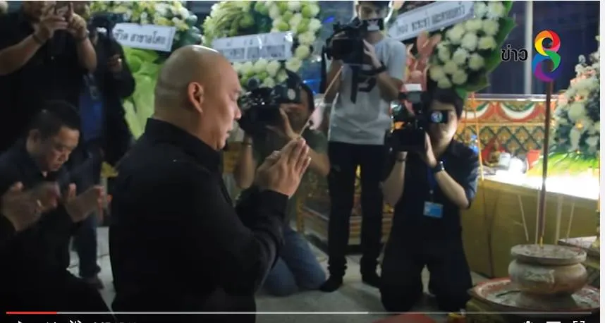 จากนั้นโหน่งได้ไปจุดธูปกราบพระพุทธและจุดธูปกราบศพและเปิดเผยว่าเพิ่งเจอภรรยาผู้เสียชีวิตวันแรกแต่ได้พูดคุยกับลูกชายบ้างแล้วและจะรับผิดชอบทุกอย่างกระทั่งพิธีทางศาสนา และกราบขอโทษครอบครัวและญาติผู้เสียชีวิตหากลูกชายแพทย์อนุญาตให้ออกจากโรงพยาบาลได้ก็จะนำตัวมากราบขอขมาศพ แต่ตอนนี้ยังไม่สามารถออกจากรพ.ได้ เพราะยังมีอาการเจ็บที่หน้าอกและเดินกระเผกซึ่งที่ผ่านมายังไม่ได้คุยอะไรกับลูก ตนเองยอมรับว่าเครียดมากไม่ได้กินข้าวนอนไม่หลับเครียดกับเรื่องที่เกิดขึ้นกลัวว่าครอบครัวผู้เสียชีวิตจะไม่เข้าใจหลังจากพิธีทางศาสนาแล้วเสร็จ ตนเองจะพูดคุยกับครอบครัวผู้เสียชีวิตอีกครั้งหนึ่งเรื่องการดูแลเยียวยาครอบครัวผู้เสียชีวิต