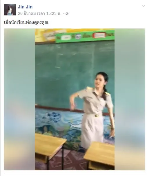 กลายเป็นคลิปที่เป็นกระแสและได้รับการแชร์ในโลกออนไลน์ เป็นอย่างมาก เมื่อสมาชิกเฟซบุ๊กท่านนึงชื่อ Jin Jin ซึ่้งเป็นครูนักเรียนโรงเรียนประถมแห่งหนึ่ง กำลังสอนนักเรียนท่องสูตรคูณแต่เพิ่มความเร้าใจให้กับการท่องสูตรคูณด้วยการลุกขึ้นเต้นประกอบจังหวะที่นักเรียนก็ท่องด้วยทำนองสุดเร้าใจเช่นกัน เรียกว่า ได้รับคำชื่นชมหากครูทุ่มเทให้กับการสอนอย่างนี้ และให้ความสำคัญกับเด็กๆมากขนาดนี้