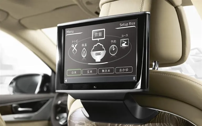 รถหรู Audi A8 5.5 รุ่นพิเศษ มาพร้อมกับหม้อหุงข้าวพร้อมด้วยอุปกรณ์รองรับการรับประทานอาหารอยู่ในห้องโดยสารแบบครบครัน ภายในยังถูกตกแต่งด้วยเบาะสีเสื่อทาทามิ ซึ่งเป็นเสื่ออปูพื้นของญี่ปุ่น ให้บรรยากาศบ้านๆ เหมือนกับได้นั่งกินข้าวอยู่ที่บ้านอย่างนั้นเลย