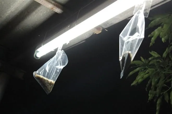 1. คุณจะต้องมี ถุงร้อนใส่ หรือถุงที่เราเอาไว้ใส่กับข้าวนี่แหละ บวอกกับเทปกาวใสเอาไว้ติดถุงไปห้อยไว้ใกล้ๆกับกับหลอดไฟนีออน ซัก 2 ถุงจะกำลังดี
