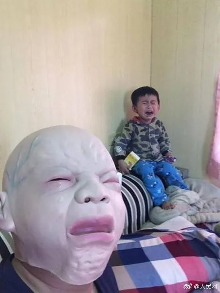 คุณพ่อชาวไต้หวันเห็นว่าลูกชาย 3 ขวบร้องไห้ไม่หยุด จึงอยากให้ลูกเอาใจเขามาใส่ใจเรา รู้ว่าเห็นคนอื่นร้องไห้จะรู้สึกอย่างไร จึงไปซื้อ “หน้ากากเด็กร้องไห้” มาใส่ ผลปรากฏว่าเด็กตกใจร้องไห้หนักกว่าเดิมอีก อย่างไรก็ตามคุณพ่อก็เผยว่าความจริงแล้วเด็กไม่ได้กลัวหน้ากาก แต่ที่ร้องไห้ก็เพราะอยากนอนกลางวัน อีกทั้งยังไม่ได้กินขนมนั่นเอง