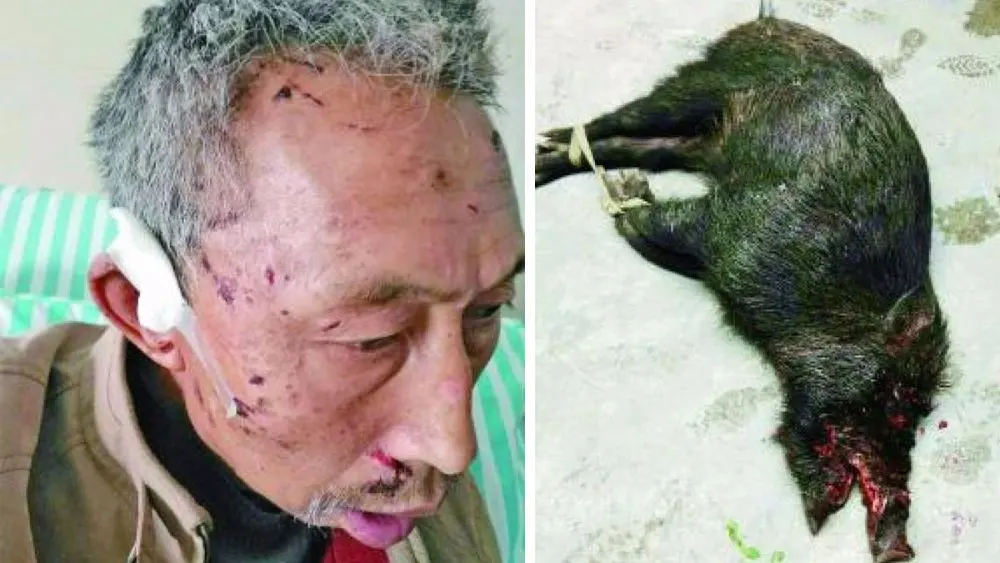 สุดโหด! คุณลุงชาวจีนสู้กับหมูป่าจนรอดชีวิตกลับมา