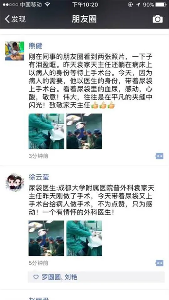 สำนักข่าวซินหัวรายงานว่า เมื่อวันที่ 22 มีนาคมที่ผ่านมา นายแพทย์หยวนเจียเทียน ผู้อำนวยการแผนกศัลยกรรมของโรงพยาบาล ในเครือมหาวิทยาลัยเฉิงตู ที่เพิ่งได้รับการผ่าตัดสลายนิ่วมาก่อนหน้านี้ไม่นาน ได้เข้าผ่าตัดคนไข้ในสภาพที่ตนเองนั้นยังต้องแบกถุงปัสสาวะปนเลือดอยู่ด้วย
