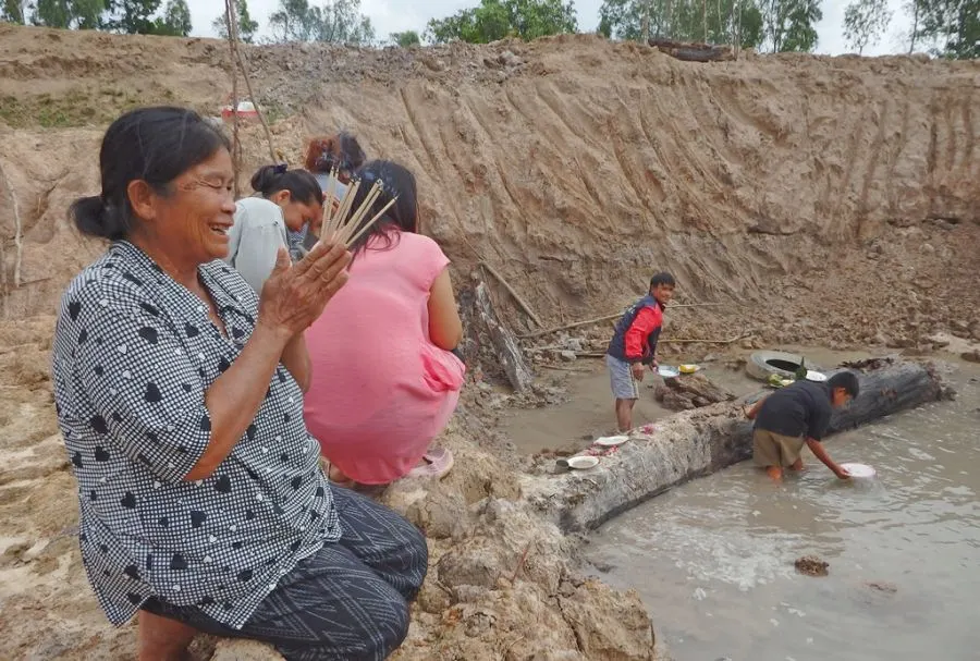 นายคำภี กล่าวว่า เมื่อวันที่ 15 มี.ค.ที่ผ่านมา ตนอยากขุดสระน้ำที่ตื้นเขิน เพื่อไว้กักเก็บน้ำไว้ใช้หน้าแล้ง จึงว่าจ้างให้รถแบ็คโฮของหนุ่ม ชาว ต.รามราช มาขุดแลกเปลี่ยนเป็นค่าจ้างให้นำดินไปขาย หลังจากขุดลึกลงไปใต้ดินได้ 4 เมตร ก็พบส่วนปลายต้นตะเคียน ขณะคนขับรถแบ๊กโฮขุดพบเห็นแสงประหลาดพุ่งวาบออกมาจากเนื้อไม้ คนขับรถแบ็คโฮตกใจจึงได้รีบเผ่นหนี หลังกลับบ้านกลางดึกได้ฝันว่าเห็นเลขเด็ด 92 บริเวณง่ามไม้ จึงไปบอกญาติที่ บ.ซอง นำไปซื้อหวยใต้ดินถูกเลขล่างงวดวันที่ 1 มี.ค.ที่ผ่านมากันยกหมู่บ้าน