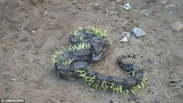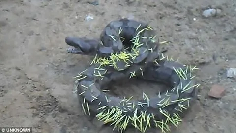 สำรวจโลกเผยแพร่ งูพยายามจะกินเม่น ภาพนี้เป็นเหตุการณ์ที่เกิดขึ้นในประเทศบราซิล โดยเป็นภาพของงูโบอา คอนสตริกเตอร์ที่ร่างกายเต็มไปด้วยขนของเม่น เนื่องจากมันพยายามที่จะกินเม่น แต่ก็ถูกขนที่แหลมเม่นทิ่มตำเต็มตัว จนได้รับบาดเจ็บ