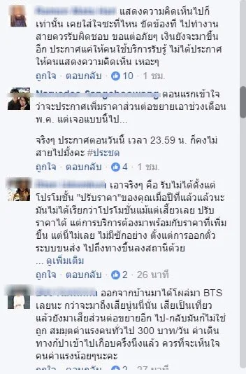 อย่างไรก็ตามมีชาวเน็ตเข้ามาคอมเม้นท์ แสดงความคิดเห็นต่อการปรับอัตราค่าเดินทางเข้า-ออก หรือ ผ่านในส่วนต่อขยายรถไฟฟ้า