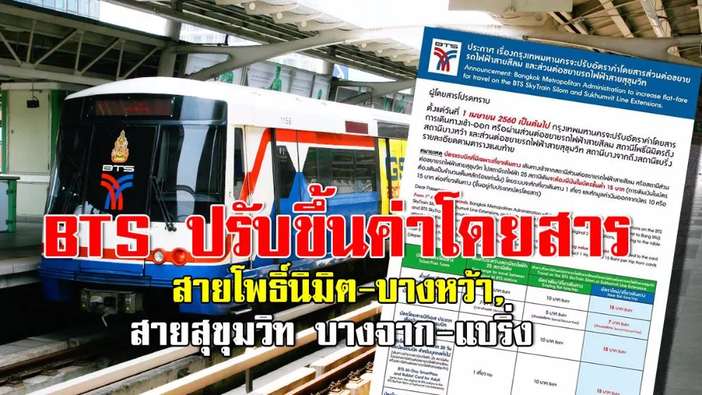 BTS ประกาศขึ้นค่าโดยสาร การเดินทางเข้า-ออก หรือผ่านส่วนต่อขยายรถไฟฟ้า เริ่ม1 เมษายน 2560 เป็นต้นไป