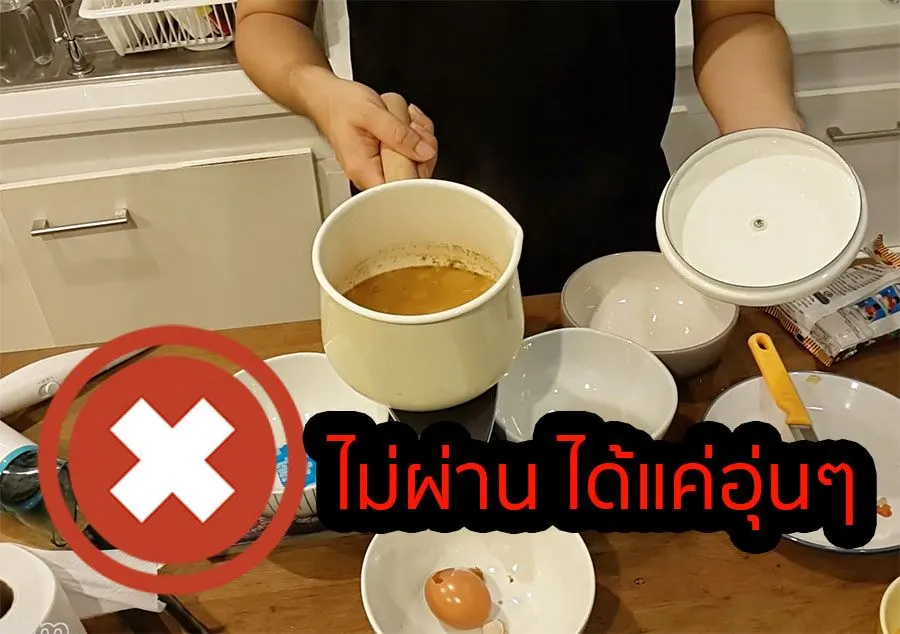 ทิ้งไว้ประมาณ 3 นาที โอ้ใช้ๆได้ หน้านุ่ม หลังกรอบ แต่ไส้กลางเย็นนิดหน่อย เอ้าให้ผ่านๆ
