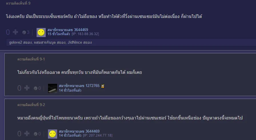 ก็ตามนั้น เพราะตรงช่องระหว่างเดินผ่าน เล่นมีตัวตรวจจับตลอดแนวที่ญี่ปุ่น รู้สึกมีแค่ตอนเดินเข้า กับใกล้จุดที่จะออก แถมเวลาเร่งด่วนหรือบางที่ก็เปิดไว้ตลอด และไม้กั้นไม่ได้หนาแบบบ้านเราด้วย