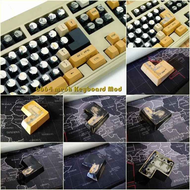 ตัวแรกของแป้นพิมพ์ไปที่ผมไปเจอ ก็ตัว TOP ของวงการเลย คือ IBM model M ก็หามาเรื่อยๆ เพราะชอบจนวันนึงก็เข้าใจว่าแดดบ้านเรานี่ มันแทบจะเผาได้ทุกอย่าง รวมทั้ง แป้นพิมพ์ด้วย มันเหลือง UV น่าเกลียด ผมเลยจับมันมาพ่นสีตกแต่ง ความมันส์เลย เกิดขึ้นตามรูปครับ