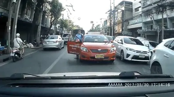 คลิปวีรกรรมแท็กซี่ไทย ขับรถย้อนศร แถมยังเปิดประตูออกมาด่าคันอื่นที่ไม่หลีกทางให้ ก่อนแทรกเลนไปเฉย