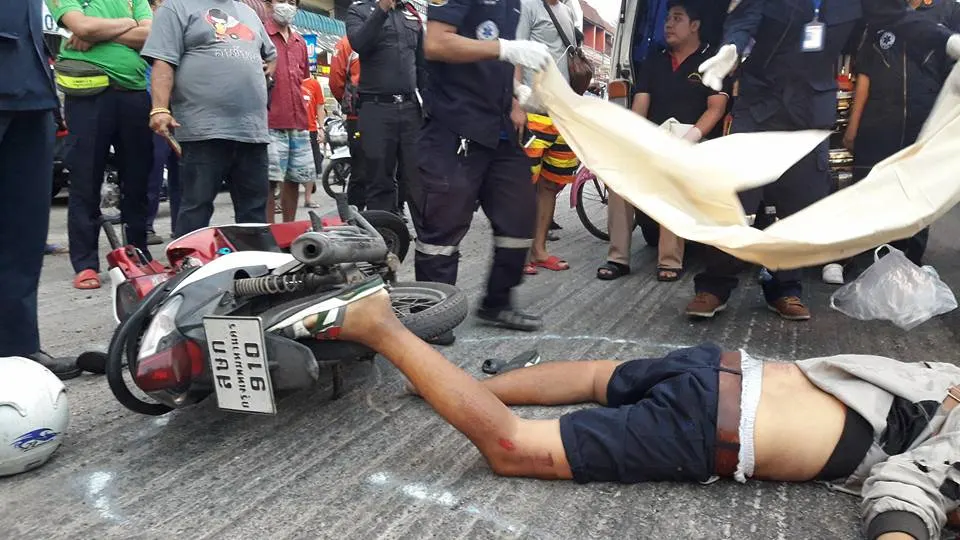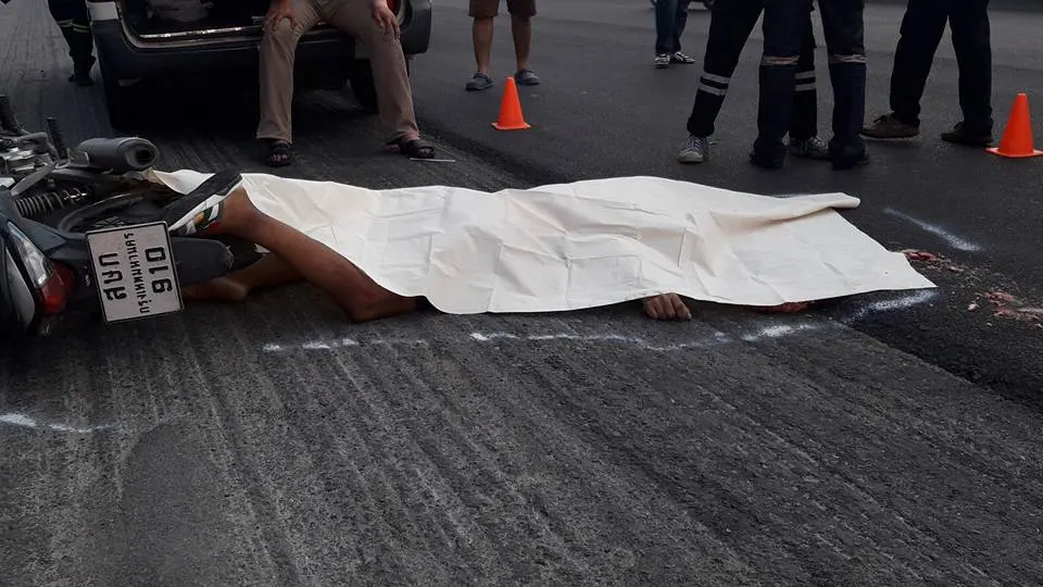 พบผู้เสียชีวิตเป็นชายอายุ 32 ปี นอนเสียชีวิตอยู่กลางถนนจมกองเลือดและเจอมอไซค์ของผู้ตายล้มอยู่ห่างไปประมาณ 100 .เจอรถพ่วง 18 ล้อ จอดอยู่ข้างทางแล้วที่ล้อหลังข้างซ้ายมีเศษชิ้นเนื้อของผู้ตายติดอยู่