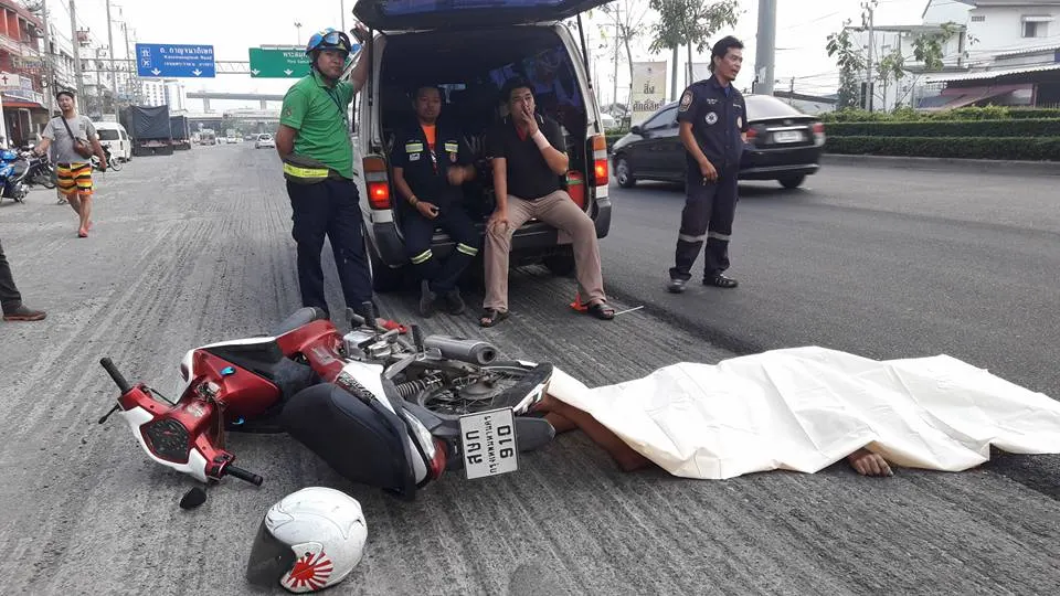 3 เมษายน ข่าวสลด ถนน นรกหนุ่มวัย 32 ปี ขับรถมอเตอร์ไซค์กลับบ้านเกิด รถเสียหลักเพราะถนนไม่เลียบ เป็นเหตุให้รถมอเตอร์ไซค์ล้มใส่ 18 ล้อ ทับหัวระเบิด ดับคาที่ ย่านพระประแดง..