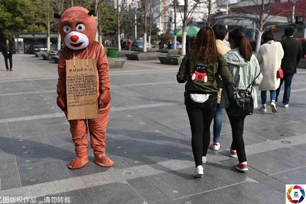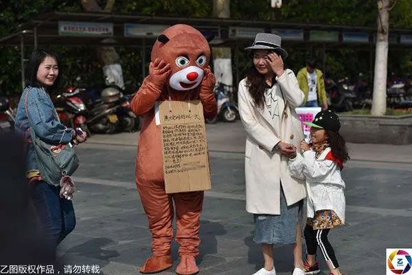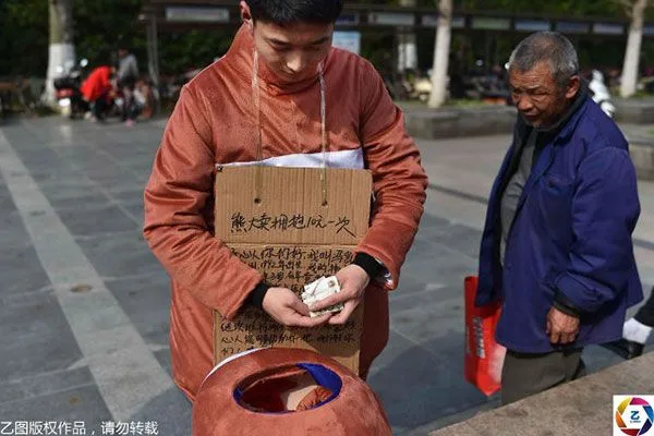 เรื่องราวสุดซึ้งนี้เริ่มต้นเมื่อปี 2015 ลูกชายวัย 1 ขวบของ Feng Kai ได้รับการวินิจฉัยว่าเป็นมะเร็งเม็ดเลือดขาว Feng ได้ลาออกจากงานช่างซ่อมเพื่อมาดูแลลูกชาย ใน 2 ปีนั้นครอบครัวได้เก็บค่ารักษาพยาบาลไว้ประมาณ 370,000 หยวน และหวังว่ามันจะเพียงพอกับค่าใช้จ่ายในการรักษาลูกของพวกเขา แต่มันก็ไม่พอพวกเขาพยายามหาทางกู้ยืมเงินมาแต่มันก็ยังไม่พอ ทำให้เมื่อสัปดาห์ที่ผ่านมา Feng ตัดสินใจที่จะใส่ชุดมาสคอตหมีเพื่อขายกอดในราคา 10 หยวนพร้อมกับแขวนป้ายเล่าเรื่องราวของเขาไว้ที่คอ น่าเสียดายที่ไม่มีใครมากอดเขามากนัก ใน 3 วันเขาทำเงินได้เพียง 100 หยวนเท่านั้น ในขณะที่ค่ารักษาลูกชายของเขานั้นสูงถึง 1,000 หยวนต่อวัน โชคดีที่เมื่อเรื่องของเขาเผยแพร่ออกไปทำให้ชาวเน็ตทราบซึ้งในความรักของ Feng ที่มีต่อลูกและได้ร่วมกันบริจาคเงินเพื่อใช้ในการรักษาลูกของเขา ซึ่งเป็นเงินกว่า 180,00 หยวนเลยทีเดียว