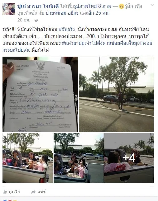 โดนจริง ปรับแล้ว 200 บาท!! ตำรวจจับห้ามนั่งหลังกระบะ