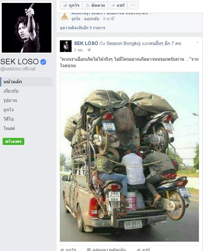 เรียกได้ว่ากลายเป็นประเด็นร้อนไปทุกวงการจริงๆ สำหรับกรณีการบังคับใช้กฎหมายในช่วงสงกรานต์นี้ โดยล่าสุด "เสก โลโซ" หรือ เสกสรรค์ ศุขพิมาย ได้โพสต์ภาพลงเฟซบุ๊กพร้อมแคปชั่นว่า....."ไอ้พวกไม่เคยจนแม่งจะรู้หัวย อะไรกับหัวอกคนจน อย่าให้กูขึ้น ไอ้แม่เด!!" และแน่นอนหลังจากนั้นแฟนคลับต่างก็เขามาคอมเม้าท์กันอย่างดุเดือด แหมงานนี้ยังไม่แน่ชัดว่าเจ้าตัวจะสื่อถึงใคร แต่งานนี้บอกได้เลยมีคนแอบสะดุ้งแน่นอน