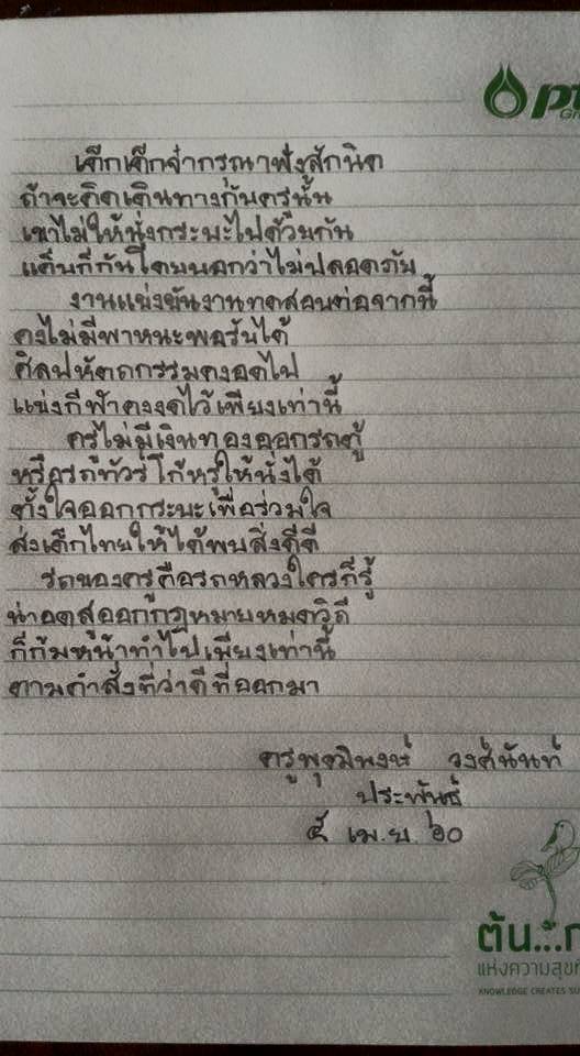 สุดซึ้ง! ครูแต่งกลอนไม่มีเงินซื้อรถตู้พานักเรียนไปทำกิจกรรม