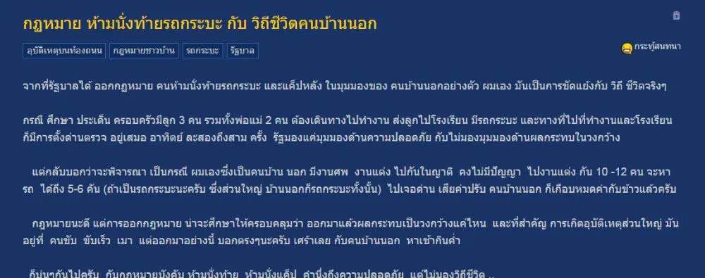 เมื่อมีผู้ตั้งข้อสงสัยว่า" กฏหมาย ห้ามนั่งท้ายรถกระบะ กับ วิถีชีวิตคนบ้านนอก "