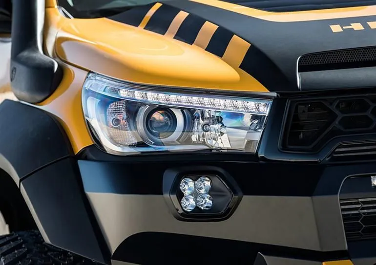 พร้อมกันนี้น้ำหนักตัวถังยังถูกลดลงด้วยการเปลี่ยนไปใช้ชิ้นส่วนตัวถังที่ทำจากคาร์บอนไฟเบอร์ ฝากระโปรงหน้าเจาะสกูป ฝาท้ายที่ผ่านการเจาะช่องลม เสริมสปอยเลอร์หลัง กระบะท้ายยังถูกยัดด้วยอุปกรณ์สำหรับการตลุยป่าครบครัน หลงป่านี่บอกเลยว่าชิวๆ แน่นอน