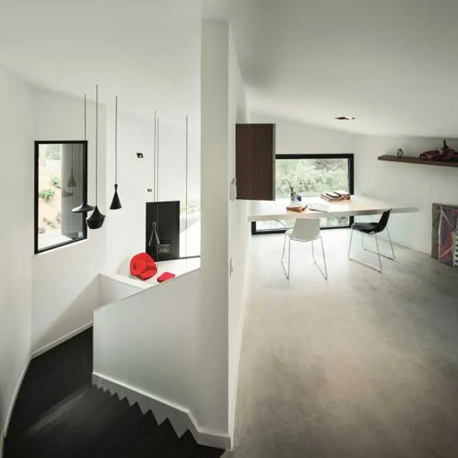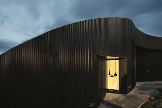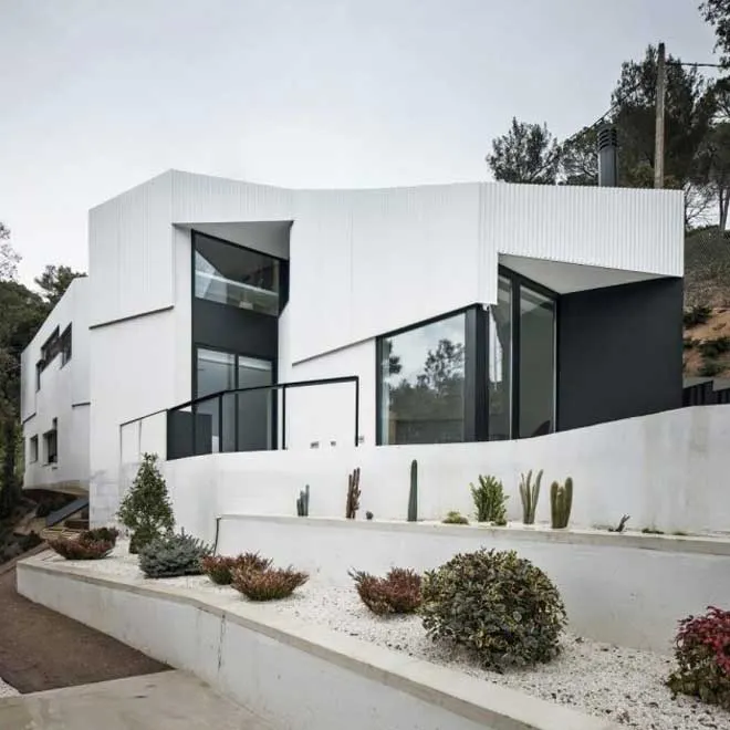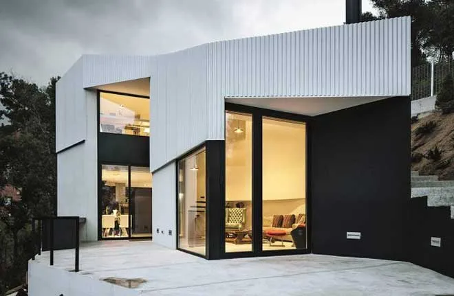 นี่เป็นบ้านโมเดิร์นที่มาพร้อมกับดีไซน์การออกแบบที่ดูแปลกตาไปมากจากบ้านทั่วๆ ไป ด้วยการผสมผสานความอิสระของรูปทรง ให้เข้ากัน เล่นสีสัน และผสมผสานควาทันสมัยเข้ากับธรรมชาติที่รายล้อมดูลงตัวยิ่งนัก ตัวบ้านถูกออกแบบมาให้มีขนาด 2 ชั้น เล่นการไล่ระดับสีของผนังและหลังคา ใช้การตกแต่งด้วยวัสดุ เมทัลชีท ไม้กระจก คนกรีต ดูมีความทันสมัยในตัว ตัวบ้านมีขนาด 3 ห้องนอน 2 ห้องน้ำ พร้อมด้วยเฉลียงขนาดใหญ่ ไว้ทำกิจกรรมและรับแขกในครอบครัว
