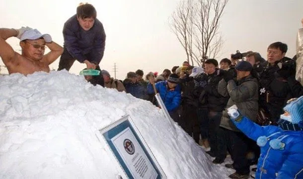 นายจิน ซองเฮา (Jin SongHao) ทำสถิติถอดเสื้อแช่ในหิมะเป็นเวลา 48 นาที 7 วินาที