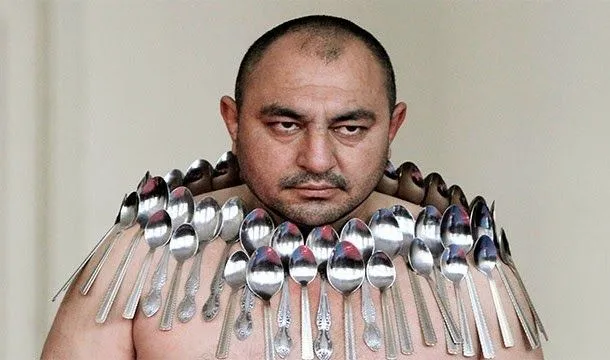 ปี 2013 ที่จอร์เจีย นายเอทิบาร์ เอลชิเยฟ วางช้อนจำนวน 53 คัน ลงบนตัว เกร็งมั้ยนั่น