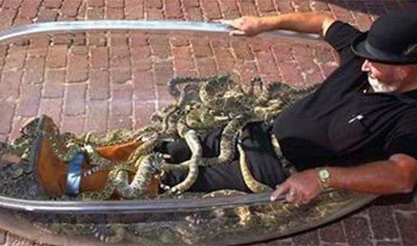 แจ๊คกี้ บิ๊บบี้ นั่งในอ่างอาบน้ำกับงู 87 ตัวเป็นเวลา 45 นาที