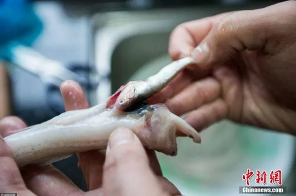 นายถูผ่าปลาตัวนี้เหมือนเช่นปกติ จากนั้นก็พบว่าในกระเพาะปลาที่แสนอัศจรรย์นั้นยังมีปลาตัวเล็กอีก 3 ตัว แต่ปลาเหล่านี้กลับไม่ถูกย่อย ทั้งลำตัวยังถูกเคลือบด้วยเมือกของปลาเต้าหู้