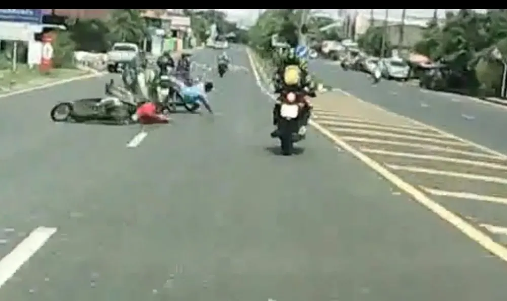 14เม.ย.60 โลกออนไลน์ได้แชร์คลิปอุบัติเหตุที่เกิดขึ้นเมื่อวันที่13 เมษายนที่ผ่านมา ที่ อ.พิบุลมังสาหาร จ.อุบลราชธานี ซึ่งเป็นภาพจากกล้องหน้ารถ เห็นกลุ่มวัยรุ่นที่ขับเกาะกลุ่มกันมามาประ7-8คัน ทันใดนั้น รถในกลุ่มก็เกิดการเกี่ยวกัน เป็นเหตุให้ทั้งหมดล้มระเนระนาดกันไปคนละทิศคนละ เดชะบุญที่รถตามหลังมาไม่ได้ขับเร็วมาก ทุกคนจึงปลอดภัย โดยแต่ละคนได้รับบาดเจ็บกันไปเพียงเล็กน้อย
