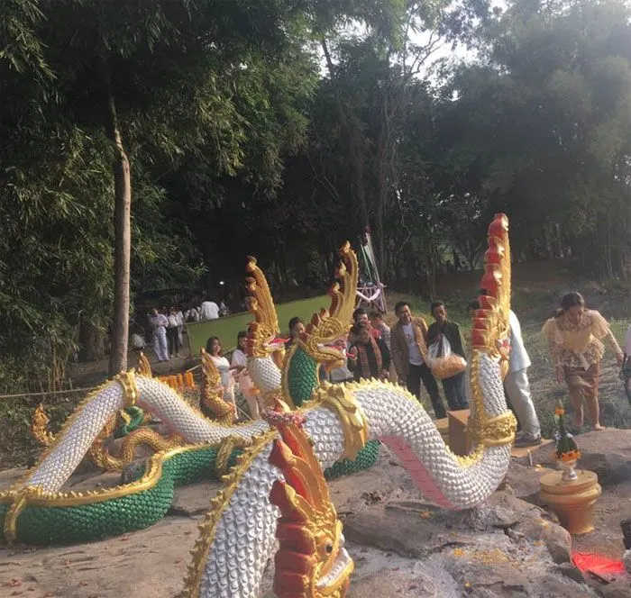 นางสุจิตรากล่าวต่อว่า จากนั้นได้มีกลุ่มผู้นำชุมชนในหมู่บ้านที่ไม่เห็นด้วย โดยอ้างว่าสร้างขึ้นมาแล้วทำให้ฝนไม่ตกต้องตามฤดูกาล ขณะที่มติของชาวบ้านส่วนใหญ่เห็นชอบให้พัฒนาเป็นแหล่งท่องเที่ยว ซึ่งจะส่งผลให้เศรษฐกิจดี จากนั้นเหตุการณ์ที่ไม่คาดฝันคือเมื่อวันที่ 2 เม.ย.ที่ผ่านมา ปรากฏว่ามีกลุ่มบุคคลมาลักลอบเผาและทำลายพญานาคซึ่งขณะนี้ทราบแล้วว่าเป็นกลุ่มใด แต่ขอรวบรวมหลักฐานให้ครบถ้วน เพื่อเข้าร้องเรียนต่อศูนย์ดำรงธรรมจังหวัด และมณฑลทหารบกที่ 23 ตามขั้นตอนต่อไป