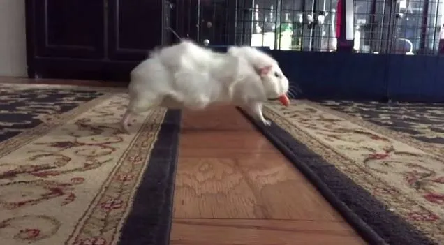 แก๊งหนูตะเภา กระโดดข้ามพื้นที่ระหว่างพรมทุกครั้งที่ผ่าน