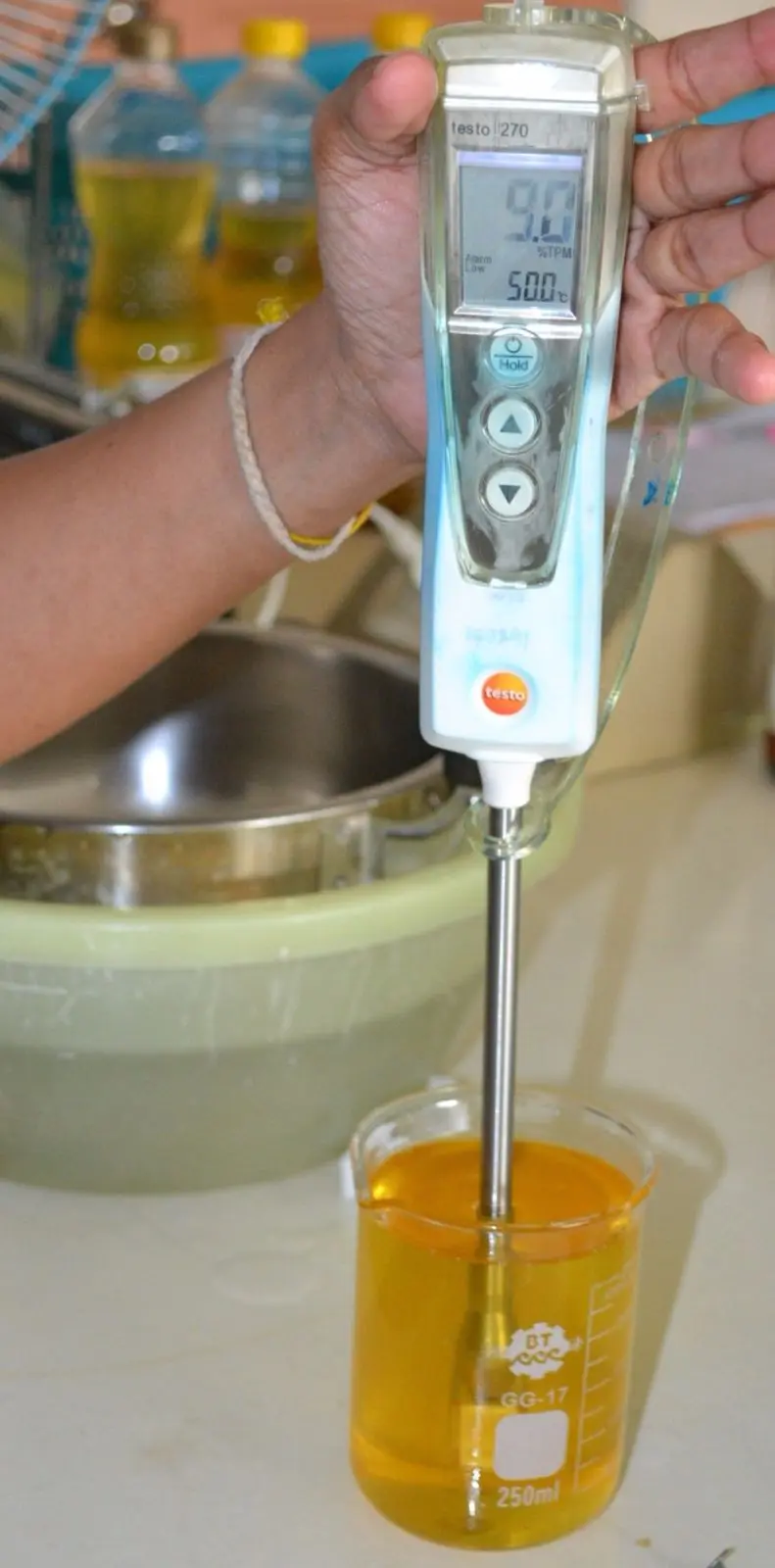 นางช่อลดา เที่ยงพุก กล่าวว่า “โดยสรุปแล้ว จากการทอดปาท่องโก๋ และนัตเก็ตไก่ ด้วยน้ำมันปาล์มโอเลอีน น้ำมันถั่วเหลือง น้ำมันรำข้าว และน้ำมันเมล็ดทานตะวัน จำนวน 10 ครั้ง พบว่า น้ำมันปาล์มโอเลอิน ให้ผลค่าโพล่าร์ต่ำที่สุด เมื่อเทียบกับน้ำมันอื่นๆ เพราะ น้ำมันปาล์มมีคุณสมบัติทนความร้อนสูง อาหารที่ทอดไม่อมน้ำมัน อาหารทอดกรอบนาน ไม่มีกลิ่นหืนและ น้ำมันปาล์มยังมีไขมันไม่อิ่มตัว 48% คือกรดโอเลอิค กรดไลโนลิอิค ซึ่งมีส่วนช่วยไม่ให้โคเลสเตอรอลไปสะสมที่ผนังหลอดเลือด และค่าโพลาร์จากการทอดอาหารของน้ำมันทั้ง 4 ชนิด มีค่าต่ำกว่า 25% (ตามประกาศมาตรฐานสารโพล่าร์ของน้ำมันทอดซ้ำของอย.)”