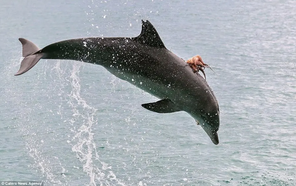 หมึกเลี่ยงการเป็นเหยื่อโดยการเกาะหลังโลมา