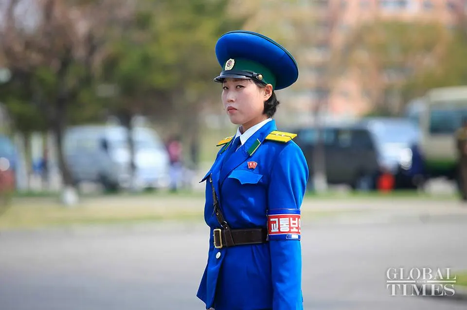 ตำรวจหญิงเกาหลีเหนือ รักษาความปลอดภัยหน้าโรงละค