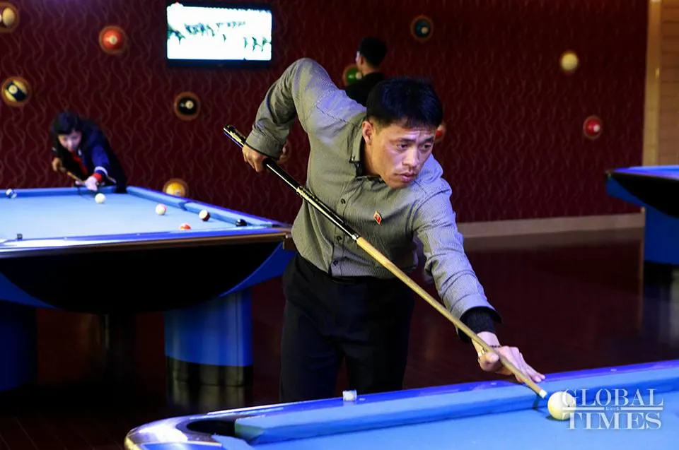 ชายเกาหลีเหนือเล่นพูลในเล้