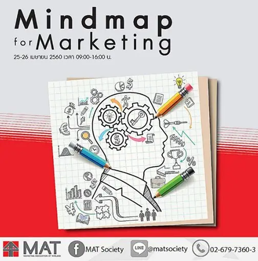 สมาคมการตลาดแห่งประเทศไทย จัด Workshop ที่จะเปลี่ยนวิธีคิดของคุณ ด้วยการมาเรียนรู้ การเขียนแผนที่ความคิด เพื่อเพิ่มประสิทธิภาพการถ่ายทอด และวิเคราะห์ข้อมูลอย่างสร้างสรรค์ และเป็นระบบ สามารถนำมาประยุกต์ใช้ได้ทันที “บุคคลใดที่มีความรู้ความเข้าใจเรื่อง Mind Map เท่ากับมีข้อได้เปรียบในการทำงาน ทำธุรกิจให้รวดเร็วและมีประสิทธิภาพ” เหมาะสำหรับผู้บริหาร และนักการตลาดที่ต้องการสร้างสรรค์สิ่งใหม่ๆ เช่นคุณ
