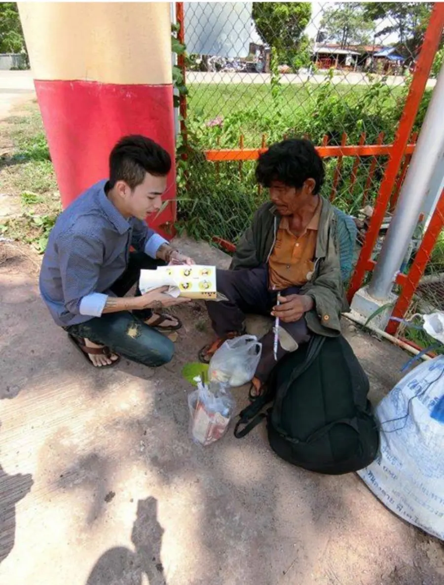 สุดซึ้ง !! "หนุ่มวัยรุ่น" เห็นคุณลุงนั่งข้างทางน่าสงสาร จึงเอาขนมไปให้ และนี่คือสิ่งที่คุณลุงพูด ทำเอาชายหนุ่มน้ำตาแทบร่วง !!