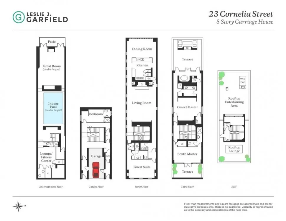 โดยทาวน์เฮาส์นี้ อยู่ บนถนน 23 Cornelia Street มีขนาดอยู่ที่ 500 ตารางเมตร จำนวน 4 ชั้น พร้อม 5 ห้องนอน แถมมีเตาผิง 3 จุด ครัวกลางแจ้ง โรงรถ ลิฟต์ และสระว่ายน้ำส่วนตัวในร่มอีกด้วย