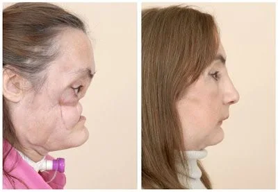 รูปเอียงข้าง ก่อนและหลัง การศัลยกรรม เปลี่ยนใบหน้า