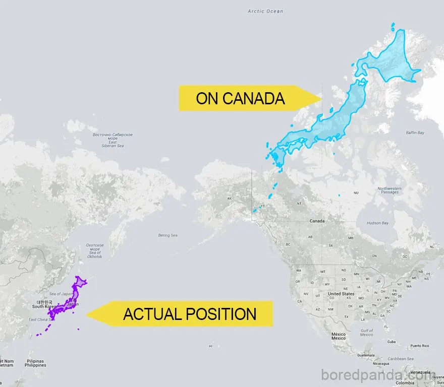 หากลองย้ายเม็กซิโกไปเทียบกับกรีนแลนด์ จะเห็นว่าจริงๆแล้วเม็กซิโกมีขนาดใหญ่กว่าที่เราคิดไว้มาก