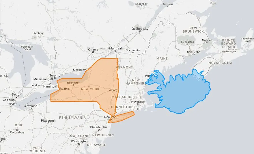 เทียบไอซ์แลนด์กับรัฐนิวยอร์ก