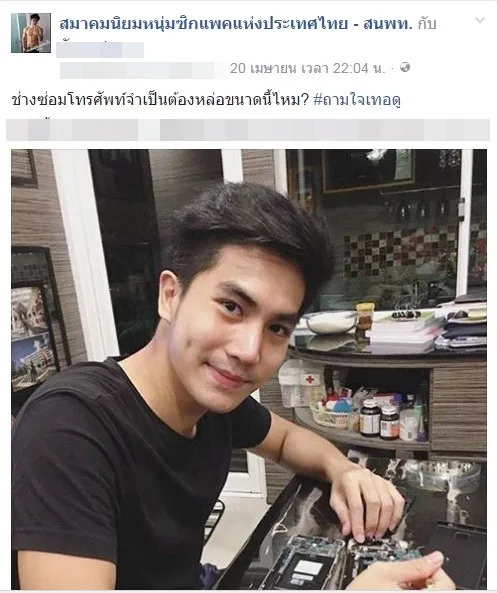 เมื่อวันที่ 22 เมษายน 2560 ผู้สื่อข่าวรายงานว่าโลกออนไลน์ถึงกับแชร์กันสนั่นอีกแล้ว เมื่อเพจ สมาคมนิยมหนุ่มซิกแพคแห่งประเทศไทย (สนพท.) ได้มีการแชร์รูปภาพของช่างซ่อมโทรศัพท์มือ จนสาวแท้-สาวเทียมนี่แห่กรี๊ดกันเพียบ ถึงขนาดบางคนออกปากว่า อยากปาไอโฟน7ทิ้ง อยากเอาไปจุ่มน้ำให้พัง อยากไปติดฟิล์มหน้าจอใหม่กันเลยทีเดียว!!